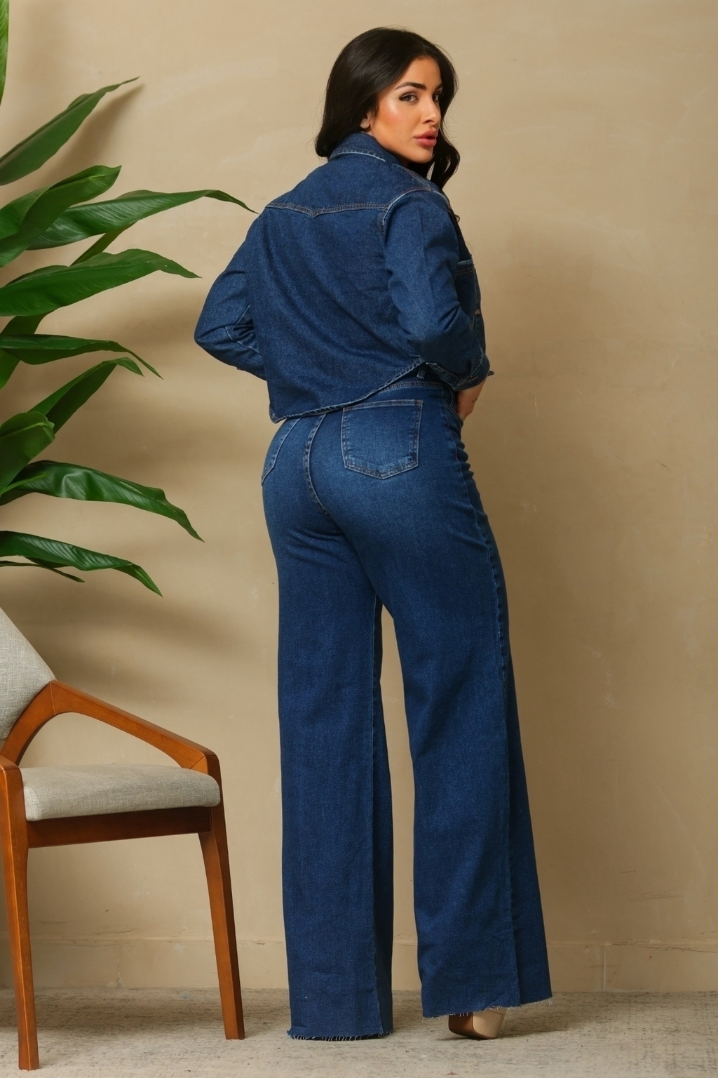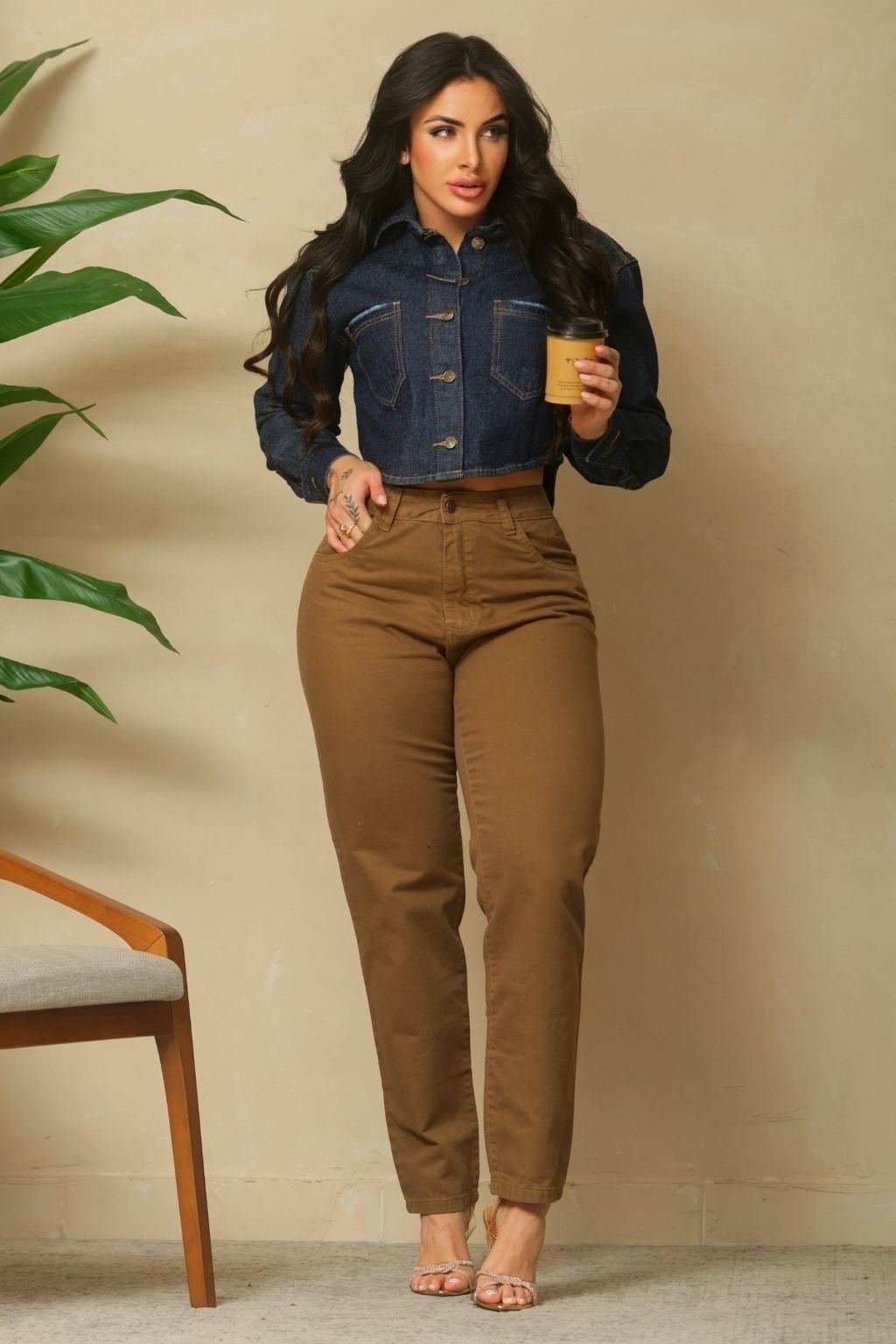 Modelagem: Jaqueta jeans feminina em modelagem cropped, com ajuste estruturado e caimento moderno.Possui gola clássica, bolsos frontais aplicados e fechamento por botões metálicos.