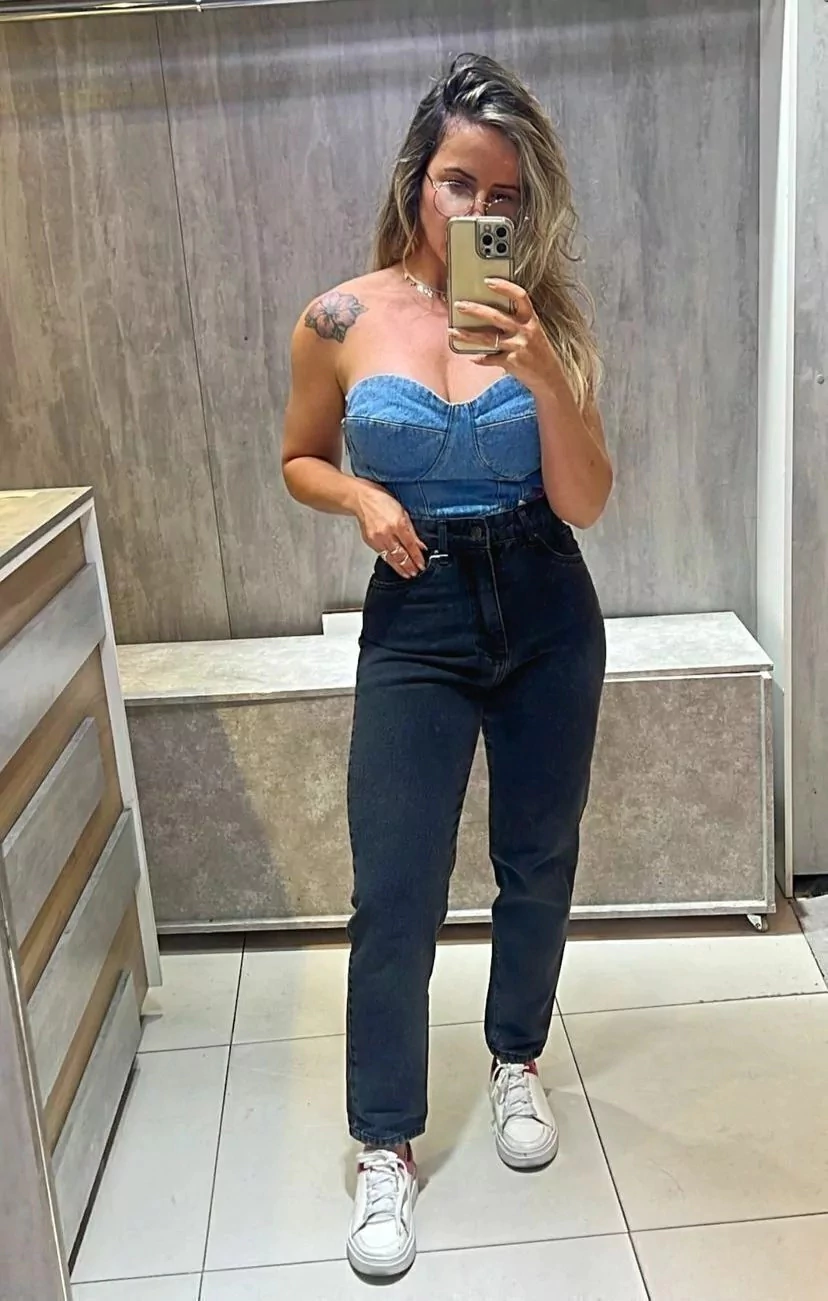 Modelagem: Calça Mom, Basica, Barra normal, Bolsos traseiros e Frontal, Bolso relógio.