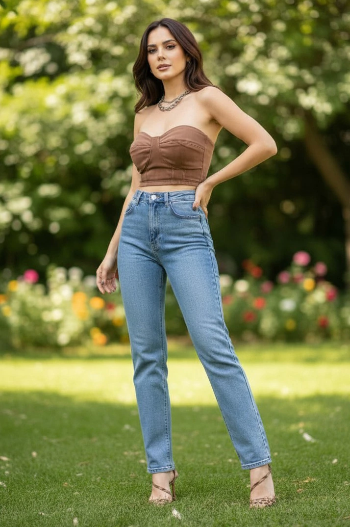 Modelagem: Calça reta clássica, com caimento elegante que valoriza a silhueta. Possui bolso relógio, bolsos frontais funcionais e bolsos traseiros tradicionais, trazendo praticidade e estilo atemporal.