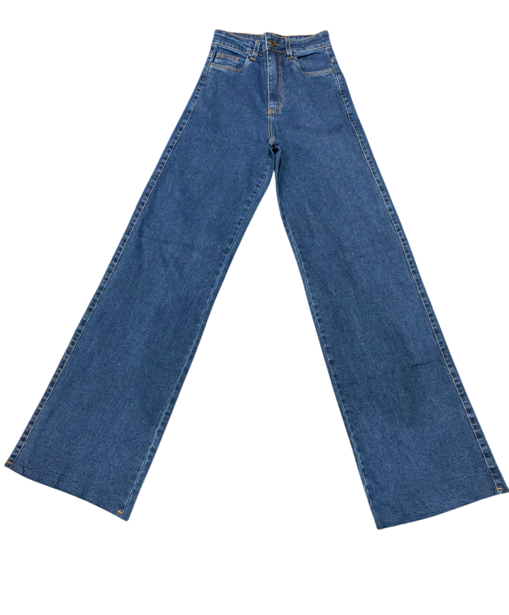 Bolsos funcionais frontais e traseiros + bolso relógioCós cintura alta, com passantes, fechamento em botão e ziper