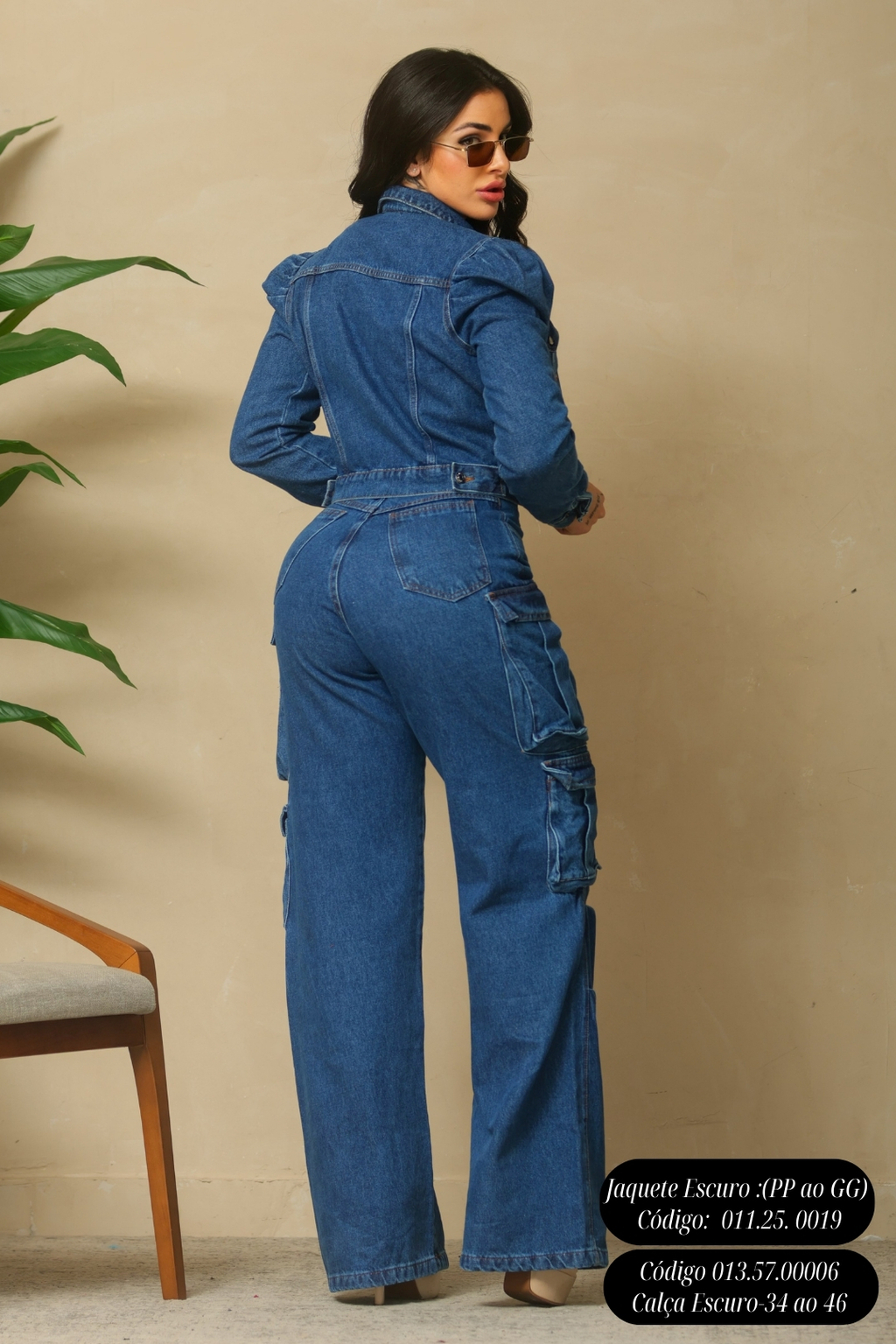Lavagem em tom escuro, versátil e atemporal, perfeita para combinações em diferentes estações.